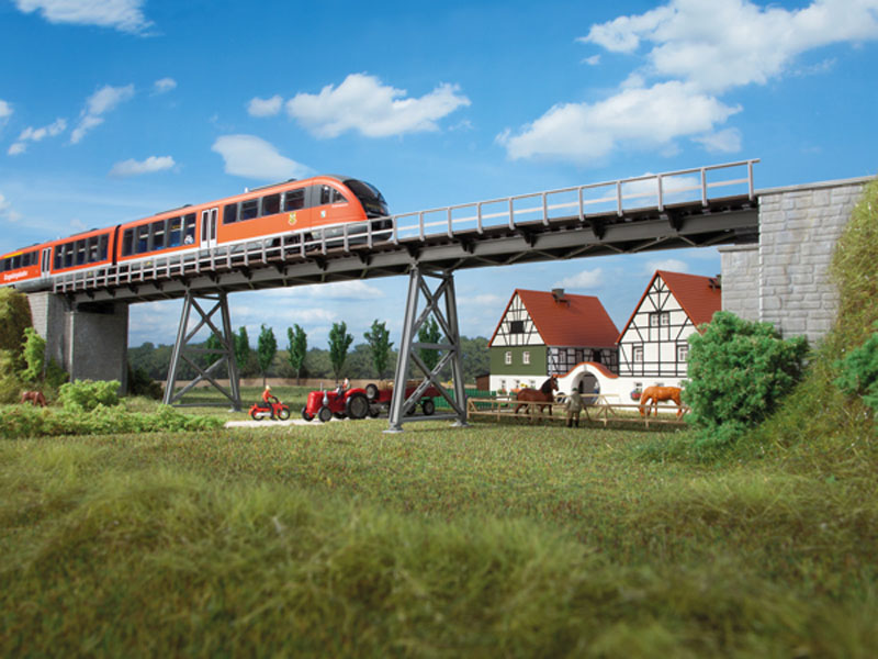 Eingleisig, gerade. Auch für die Nenngröße TT geeignet. Eignung für Gleissysteme siehe unter Hinweise. Lichte Durchfahrtshöhe 78 mm Lichte Durchfahrtsbreite zwischen den Pfeilern 170 mm