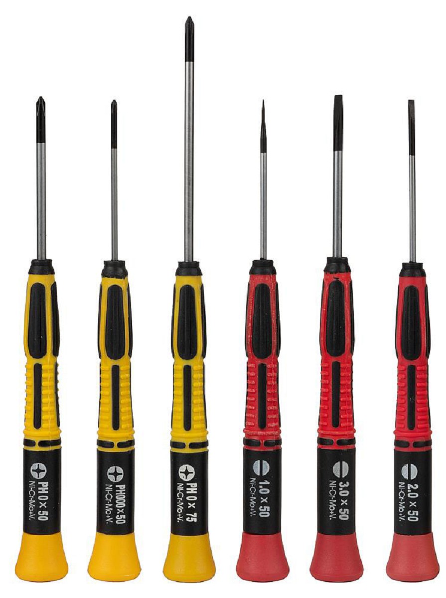 Schlitzschraubendreher: 1,5 x 50 mm, 2,4 x 50 mm, 3,5 x 50 mm.