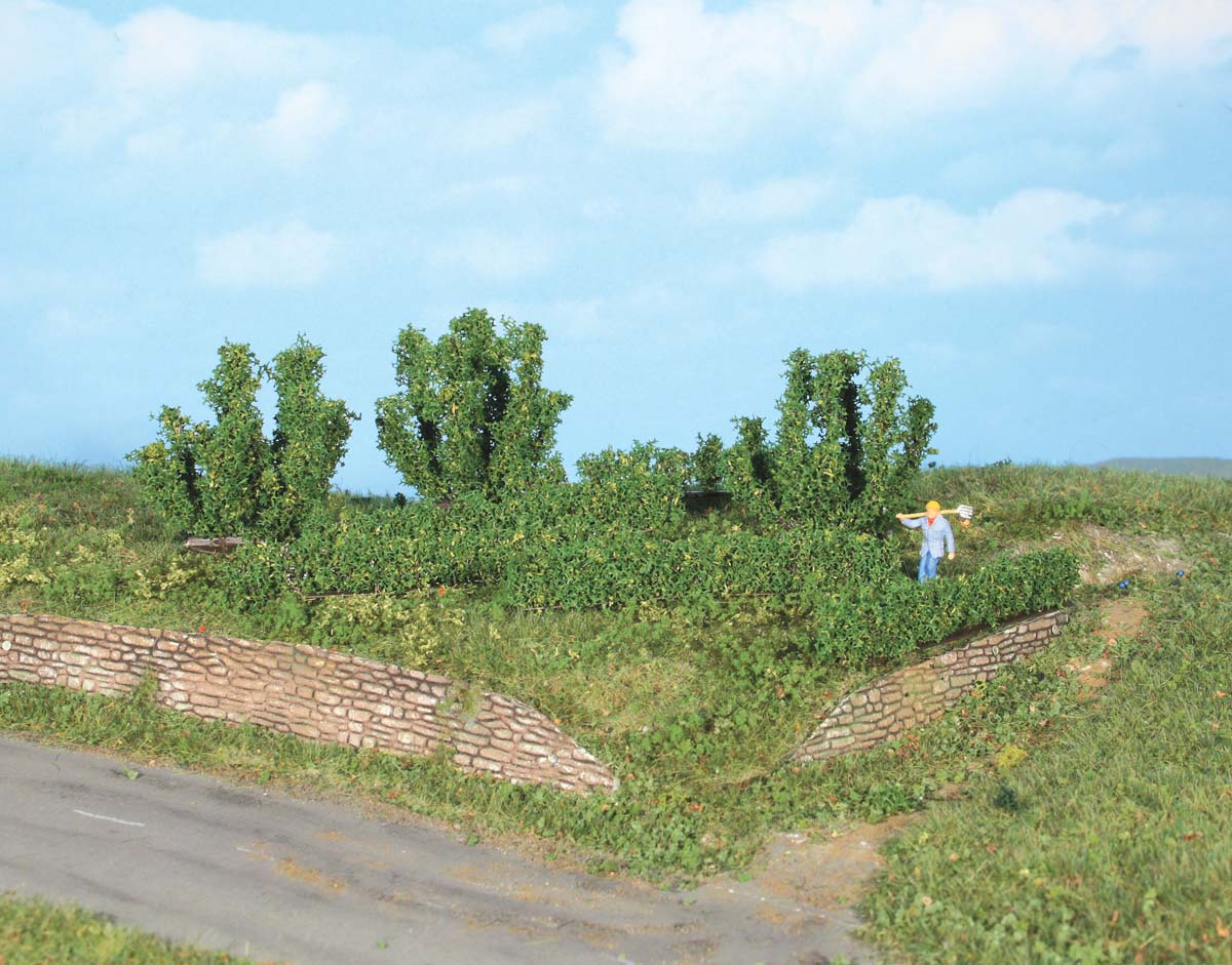 Büsche und Hecken als Grundbewuchs, Abgrenzungen oder einfach als Auflockerung Ihrer Modelllandschaft. Ein unverzichtbares Accessoire sowohl für städtische als auch für ländliche Szenen.