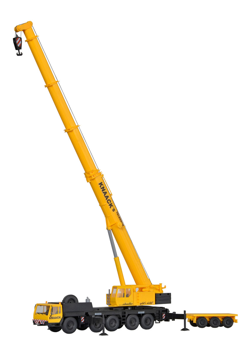 Spur: H0 Epoche: --"LIEBHERR Teleskop-Autokran LTM 1160/2 mit Gegengewichtanhänger"Bausatz. Mit Wippspitze KNAACK. Maße: Fahrstellung L 24 x B 3,8 x H 4,6 cm, ausgefahren L 15,5 x B 14 x H 43 cm. Schwierigkeitsgrad: 3 (Profis).