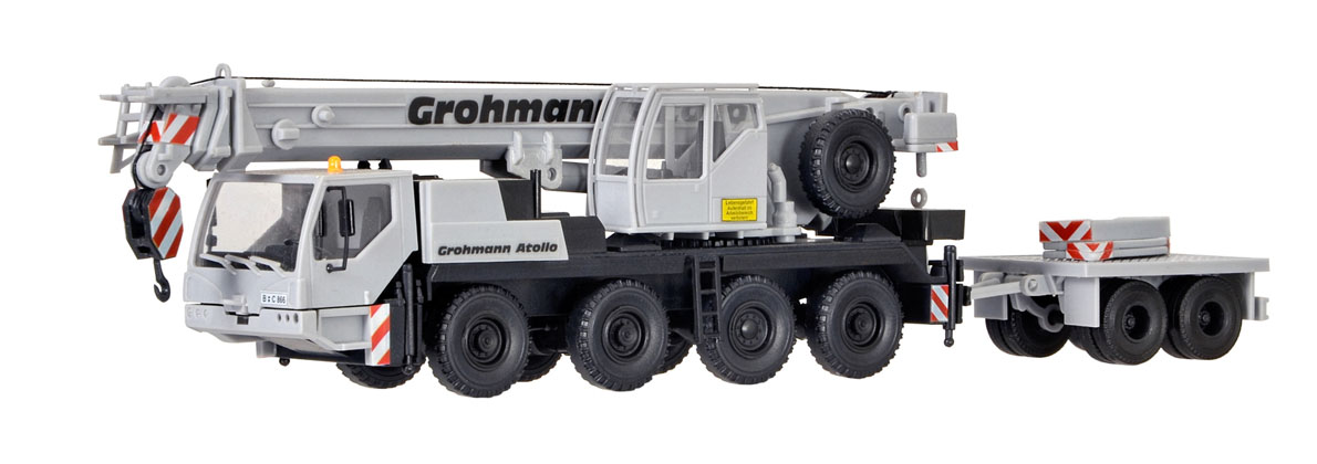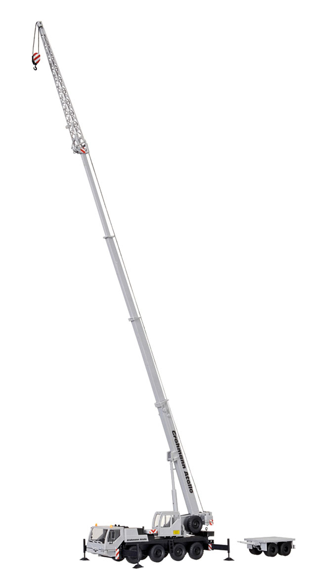 Bausatz. Die Gittermastspitze wird seitlich des Teleskopauslegers auf entsprechenden Halterungen transportiert.