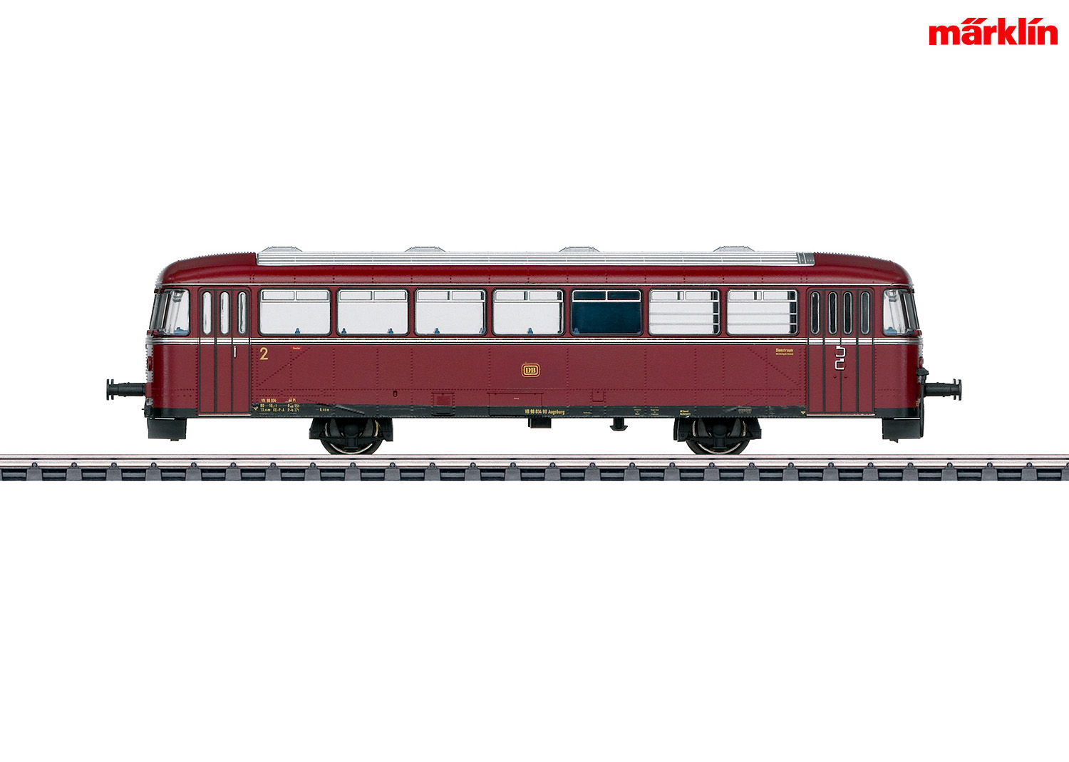 Modell: Beiwagen passend zu der aus Motorwagen und Steuerwagen bestehenden Schienenbus-Garnitur 39978. An beiden Enden in Kinematik geführte Schächte für stromführende Steck-Kupplungsdeichseln. Eine stromführende Kupplungsdeichsel liegt bei. Wagen-Innenraum mit freiem Durchblick. Inneneinrichtung. Innenbeleuchtung mit wartungsfreien warmweißen Leuchtdioden (LED). Stromversorgung der Innenbeleuchtung über stromführende Kupplungsdeichsel vom Triebfahrzeug. Länge über Puffer 16,0 cm.
