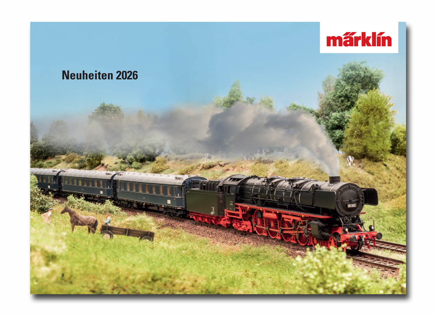 Druckfrisch auf den Tisch, der neue Märklin Neuheiten-Katalog 2026 für die Spuren H0, Z + 1. Inkluisve der MHI, MyWorld, StartUp und Club-Neuheiten. DIN A4 Color mit 128 Seiten im Querformat.