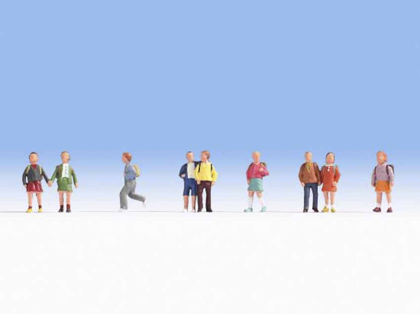 Das Modellfiguren-Set »Kinder« beinhaltet neun Figuren. Alle sind für die Spurweite H0, also für den Maßstab 1:87, geeignet und sind handbemalt.