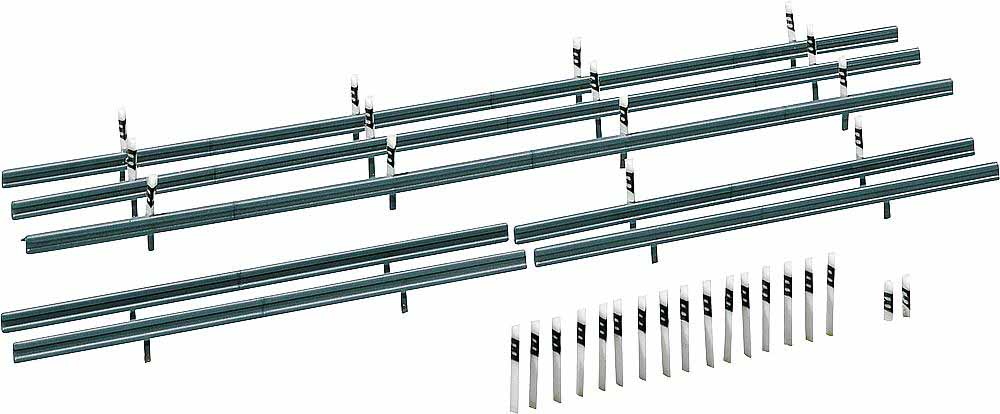 Leitplanken und Begrenzungspfähle zur Fahrbahnabsicherung.