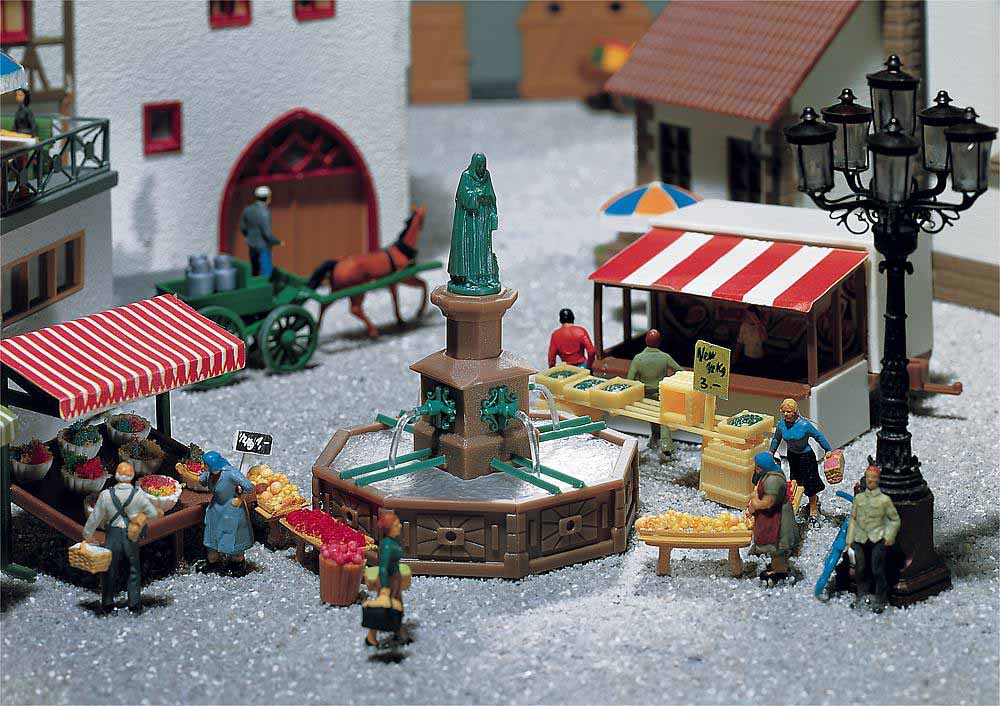 mit Brunnenfigur, 4 Wasserrohren mit Wasserstrahl und beigefügter »Wasser«-Platte.