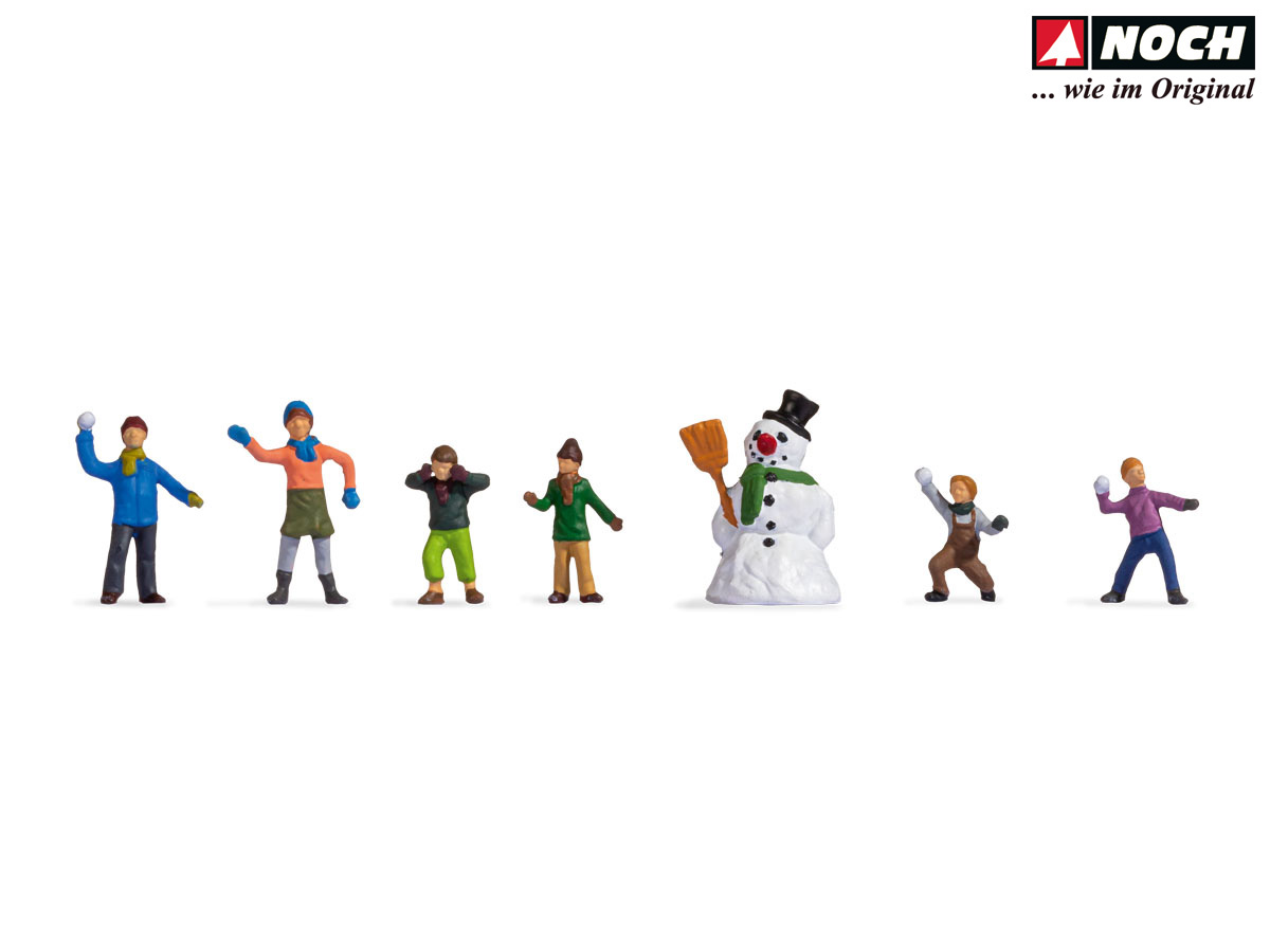 Im Figuren-Set "Kinder im Schnee" sind Modellfiguren in der Spurweite TT. Die im Set enthaltenen Figuren eigenen sich perfekt für schöne Winterszenen mit viel Schnee. Sie geben perfekt das Spielen und Toben im eiskalten Schnee auf Ihrem Diorama wieder. Nicht nur die beiden Schneemänner mit ihren langen Nasen sind auf Ihrer Anlage ein echter Hingucker, sondern auch die Kinder, welche gerade eine spaßige Schneeballschlacht machen. Die Winterfiguren eignen sich ideal für die Ausgestaltung von Winterszenen.