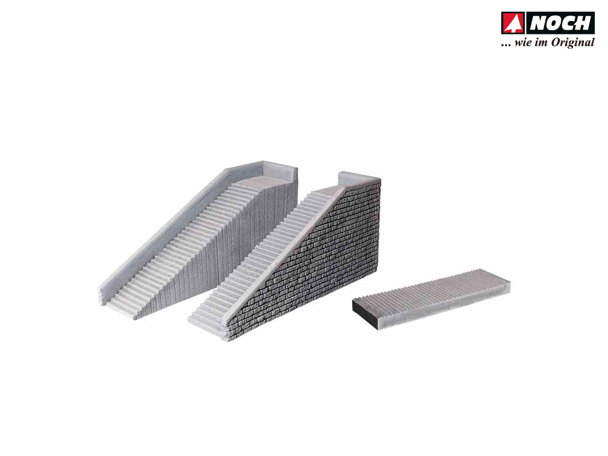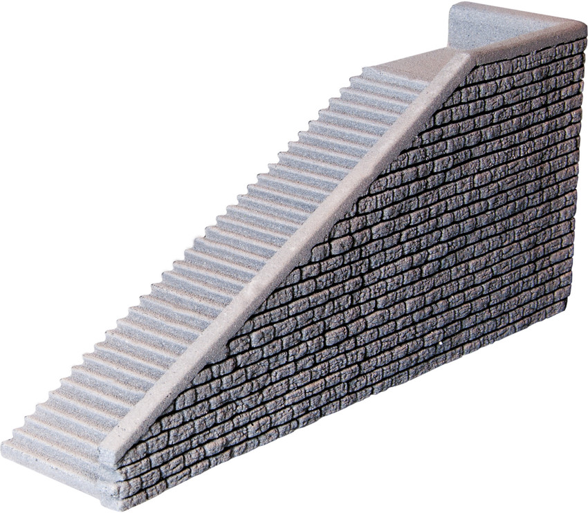 Der Bausatz besteht aus zwei Treppenaufgängen (links- und rechtssteigend) sowie einem Formteil »Treppenstufen« für den individuellen Treppenbau.