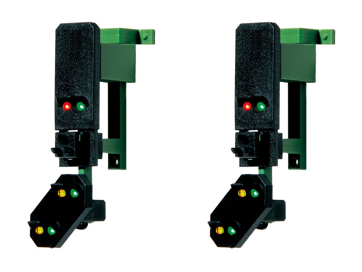Signalköpfe nach Bauart 69 ohne Mast, aber komplett verkabelt. Zur Montage an Gebäuden (z. B. kibri Brückenstellwerk Hamm Art. 39310) oder an den Signalbrücken Art. 4750 und 4755. Die Signalköpfe werden am Ausleger der Signalbrücke eingeklipst und lassen sich daher leicht austauschen. Anschluss an die Steuermodule Viessmann Multiplexer Art. 5229 oder 52292. Mit Stecker und 6 LEDs, wartungsfrei.