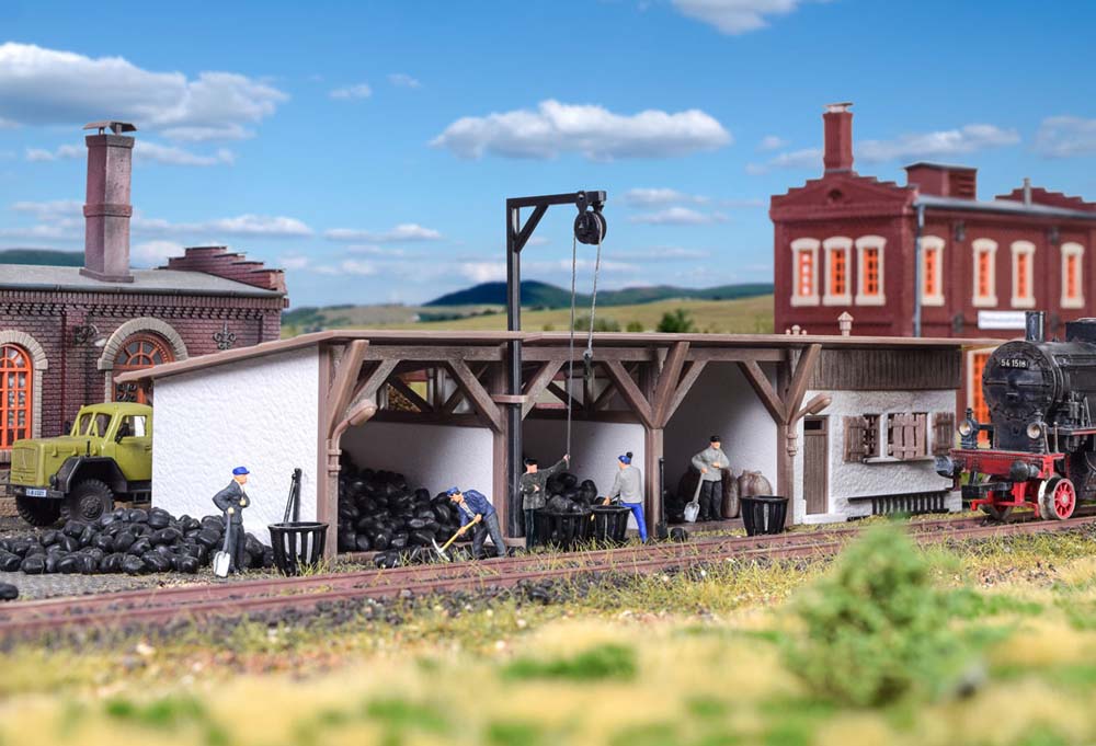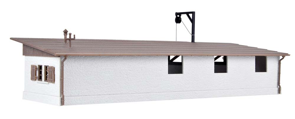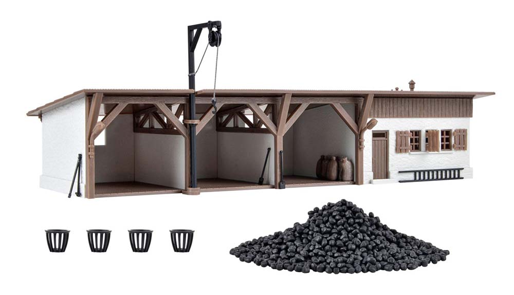 Dieser Schuppen eignet sich zur Lagerung von Schüttgütern, z. B. Kohle. Maße: L 23 x B 10 x H 8 cm.