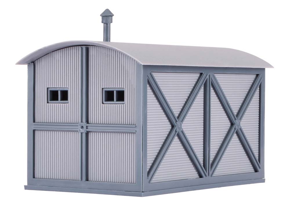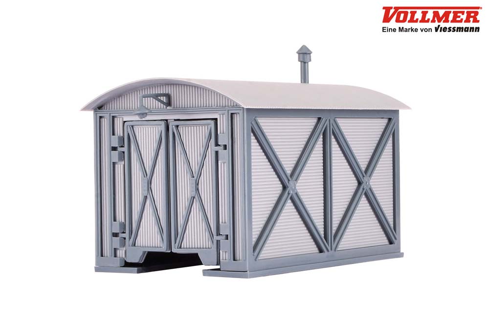 Spur: N Epoche: --"N Lokschuppen für Köf, einständig"Dieser Lokschuppen ist für kleine Diesellokomotiven der deutschen Reichsbahn und der deutschen Bundesbahn geeignet. Maße: L 6,7 x B 4 x H 4,2 cm.